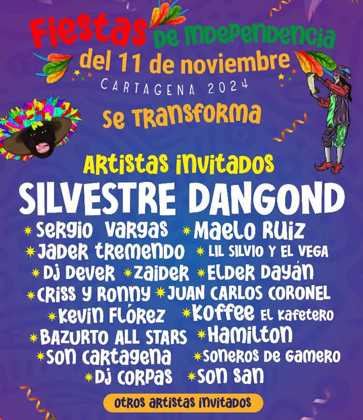 La ciudad de Cartagena se prepara para celebrar sus Fiestas de Independencia con una agenda cargada de actividades y conciertos para todos los gustos. El alcalde Dumek Turbay confirmó una nómina de artistas de talla nacional e internacional que pondrán a bailar a los cartageneros durante los meses de octubre y noviembre.