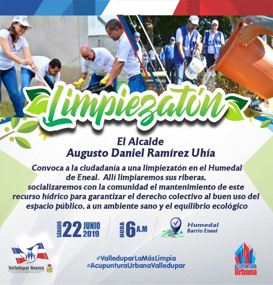 La Alcaldía de Valledupar, a través de la estrategia de Acupuntura Urbana Valledupar, realizará este sábado 22 de junio, a partir de las 6 de la mañana, una jornada de ‘Limpiezatón’ en el humedal de Eneal, un punto crítico de la ciudad que requiere una atención especial para garantizarle a la ciudadanía el derecho a un ambiente sano.